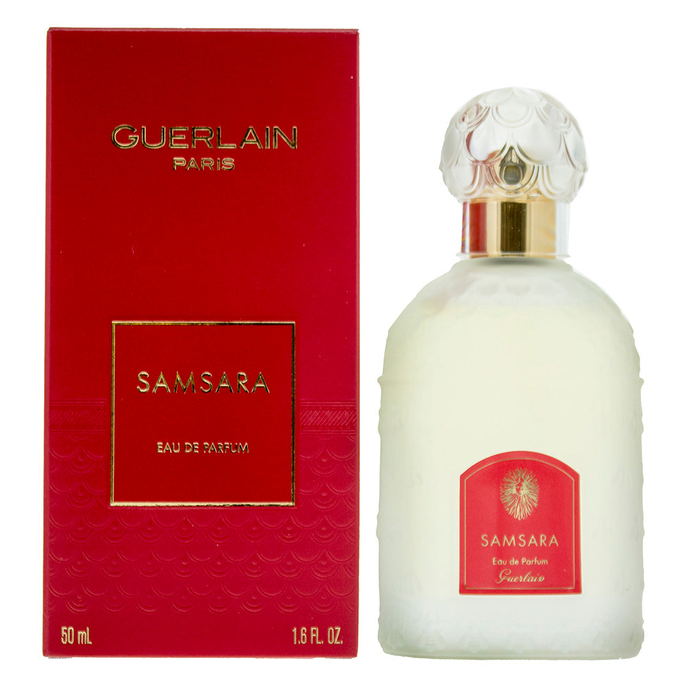 Samsara Eau de Parfum by Guerlain is a Amber Woody fragrance for women. Top notes are Ylang-Ylang, Peach, Bergamot, Green Notes and Lemon; middle notes are iris, Jasmine, Narcissus, Orris Root, Rose and Violet; base notes are Sandalwood, Vanilla, iris, Amber, Tonka Bean and Musk.